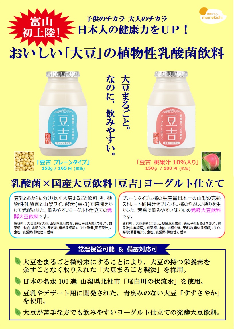 富山初上陸!大豆の植物性乳酸菌飲料『豆吉』入荷しました。
