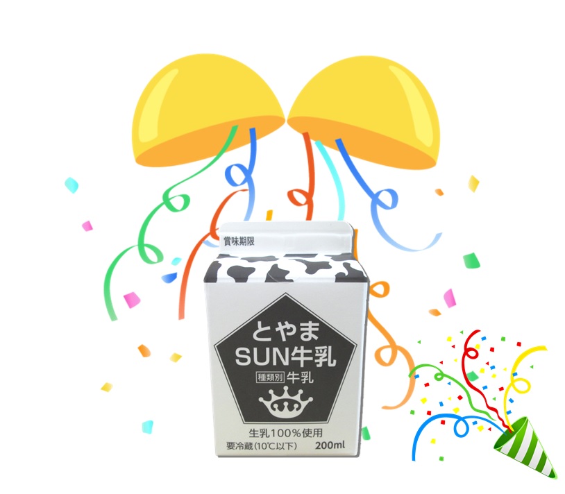長い間ご愛顧頂いております、サンフーズオリジナル牛乳の『純白牛乳200ml』は、この度、”富山県産”と”サンフーズ”を融合させた『とやまSUN牛乳200ml』に名称変更し、パッケージをリニューアル致しました!