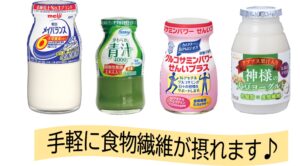 食物繊維を多く含む食品(ワカメ、切り干し大根、昆布、ごぼう、キャベツなど)を食事に追加したり、もっと手軽に!という方は、食物繊維入りの乳酸菌飲料や乳飲料はいかがですか?