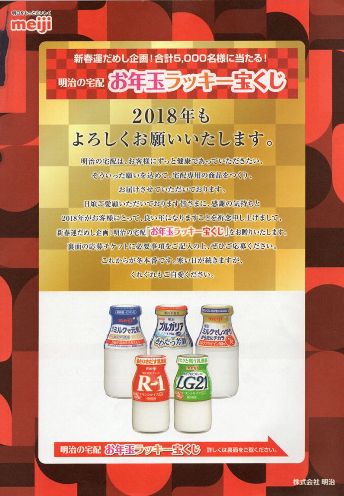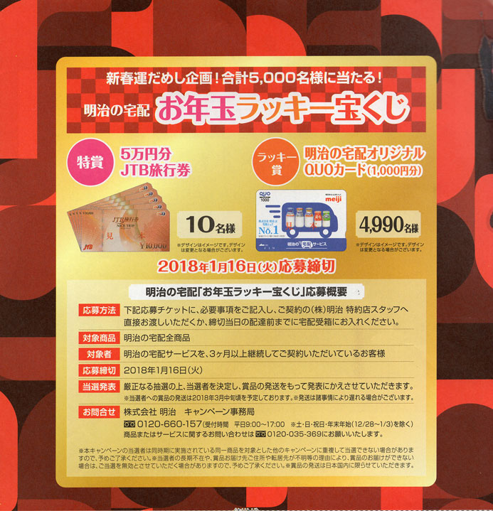 2018年新春運試し企画としまして、「明治の宅配 お年玉ラッキー宝くじ」が開催されます!